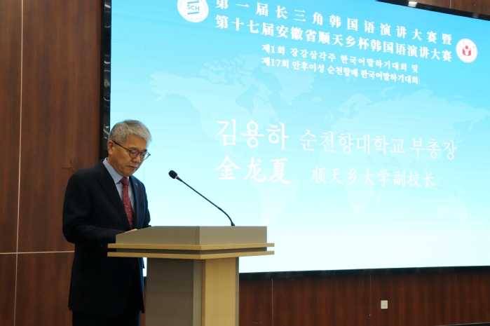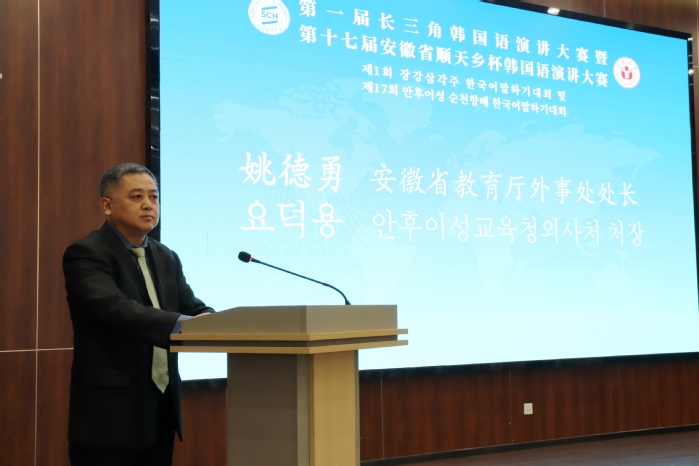 姚德勇對大賽的成功舉辦表示祝賀,向順天鄉(xiāng)大學(xué)的嘉賓表示歡迎,同時強調(diào)安徽在教育領(lǐng)域的雄厚實力以及與韓國在經(jīng)濟文化交流方面的成果。他指出,此次大賽升級為長三角賽事,規(guī)模擴大、影響力提升,將推動長三角地區(qū)韓國語教學(xué)與人才培養(yǎng),為中韓友好交往奠定堅實基礎(chǔ)。