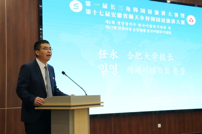 任永在致辭中表示,在學(xué)校開啟高水平應(yīng)用型大學(xué)建設(shè)新征程之際,迎來此次大賽意義非凡。自2008 年起,我校連續(xù)承辦了十七屆安徽省“順天鄉(xiāng)杯”韓國語大賽,為中韓教育交流和韓國語人才培養(yǎng)發(fā)揮了重要作用。今年的韓國語大賽擴展為長三角韓國語演講大賽,有助于長三角三省一市實現(xiàn)韓國語教育資源的共享與韓國語人才培養(yǎng)的共贏。