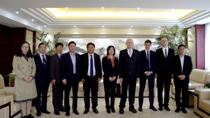 Am 22. Oktober führte der neu ernannte deutsche Generalkonsul in Shanghai, Herr Pit Heltmann, eine Delegation zum Besuch der Universit?t Hefei.Pr?sidentin Wu Chunmei traf sich mit ihm und seiner Delegation. Jia Feng, Mitglied des Parteikomitees und Direktor des Büros für ?ffentlichkeitsarbeit und Einheitsfrontarbeit, Wang Xiaofeng, Mitglied des Parteikomitees und Direktor des Büros für akademische Angelegenheiten, Wang Wenzhong, Direktor des Büros für parteiliche Angelegenheiten, Zhang Hui, Direktor des Büros für Internationalen Austausch und Zusammenarbeit, Liu Peiping, Direktor des Zentrums für Innovation und Liu Jinping, Direktor des Büros der chinesisch-deutschen Demonstrationsbasis nahmen an der Sitzung teil.