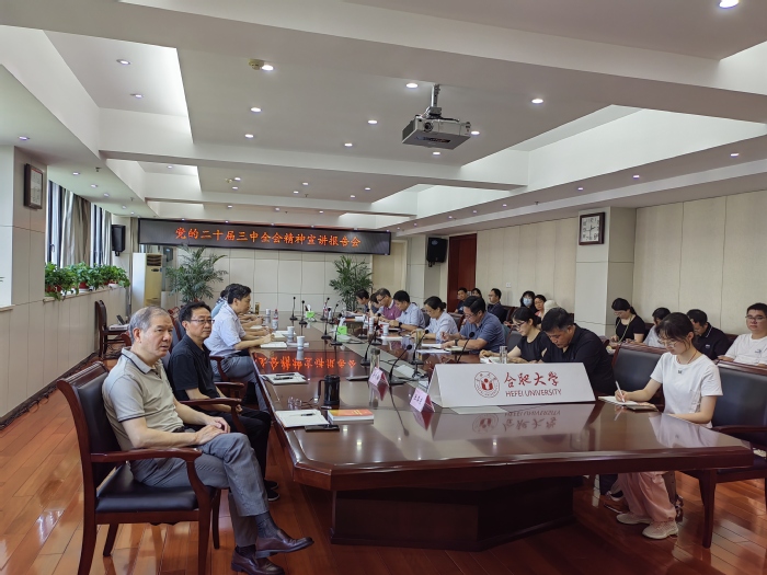 8月6日,省委宣講團(tuán)成員、省委教育工委書記、省教育廳廳長錢桂侖在我省教育系統(tǒng)開展學(xué)習(xí)貫徹黨的二十屆三中全會(huì)精神宣講。按照統(tǒng)一部署,合肥大學(xué)設(shè)立了分會(huì)場(chǎng)組織收看。校黨委書記王其東,黨委委員、紀(jì)委書記、省監(jiān)委駐合肥大學(xué)監(jiān)察專員吳功福,相關(guān)部門負(fù)責(zé)人、思政課教師代表、學(xué)生代表共30余人參加。