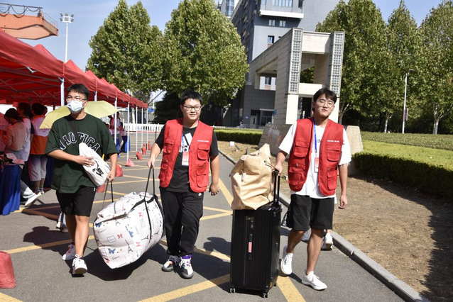 迎新的各個環節中,都少不了志愿者們的身影。他們分工合作,各司其職,指引方向,搬運行李,介紹校園,答疑解惑,也提醒新生提防最近頻繁出沒的各種詐騙。志愿者們忙碌的身影讓因為疫情防控無法進入校園內的家長們放下了擔心,也讓初入校園不熟悉環境的新生們定下了心神。“迎新活動有非常重要的意義,我們代表了學院的第一印象,新生們能對學院有更清楚的了解”。一位高年級志愿者自豪的說。