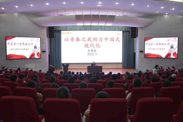 為深入學習宣傳貫徹習近平新時代中國特色社會主義思想和黨的二十大精神,引導廣大青年明確努力方向和奮斗目標,3月9日上午,校黨委書記王其東以“中國式現代化之路”為題在學術報告廳A廳為先進制造工程學院黨員、入黨積極分子和青馬班學生講授“開學第一課”。先進制造工程學院黨委書記杜娟主持講座,副書記蔡靈美、機制學生黨支部威力旺和智能制造學生黨支部書記劉罡等老師參加講座。各學院部分學生黨員代表共三百余人共同聆聽