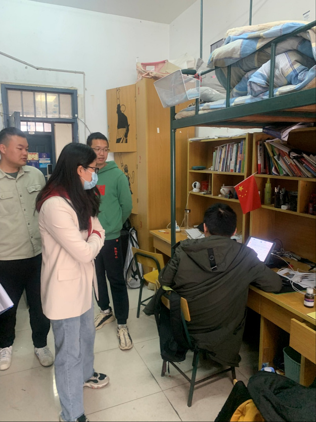 隨后,輔導員老師們深入學生宿舍,了解學生狀況。老師們重點檢查問題學生宿舍,對編下學生、心理問題學生等建立臺賬。在畢業(yè)班學生宿舍,輔導員們了解學生的學業(yè)完成情況和就業(yè)情況,宣傳就業(yè)和征兵政策,鼓勵同學們面對嚴峻就業(yè)形式更要堅定就業(yè)信心,始終保持積極樂觀的心態(tài)勇敢向前。