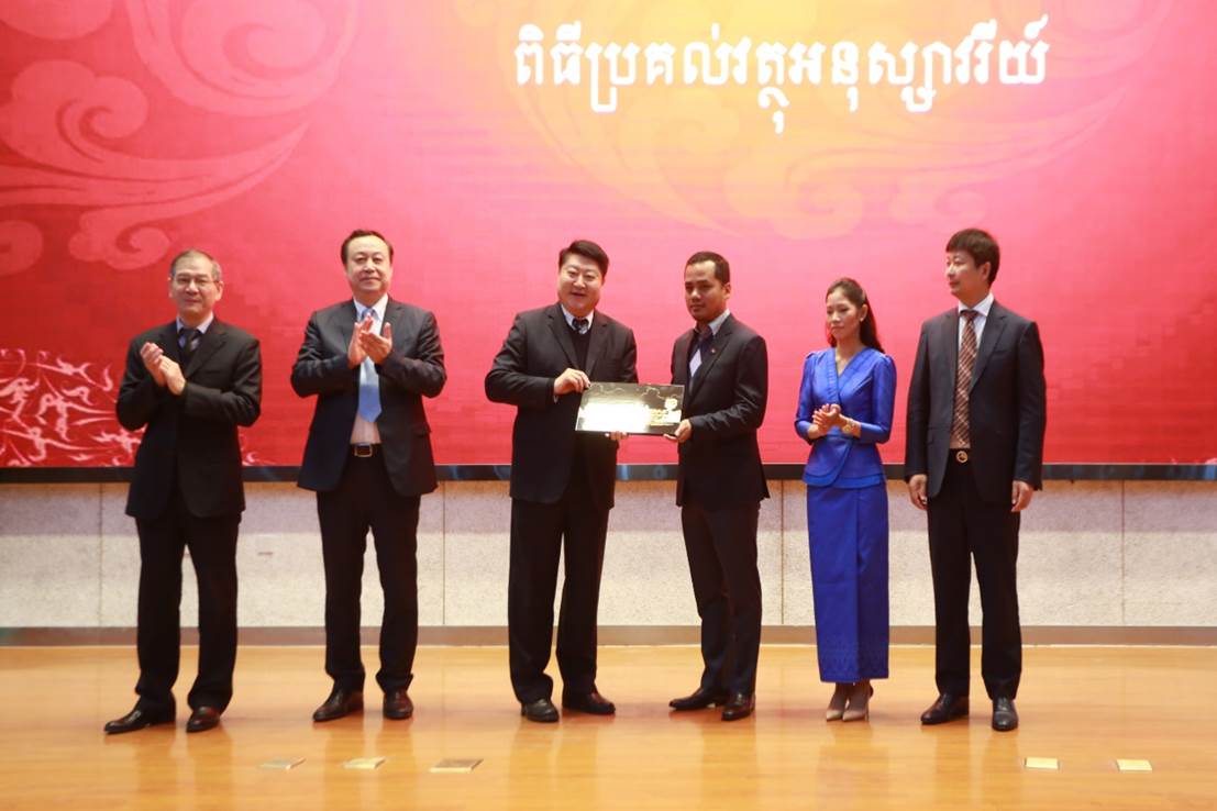 而后,在蔡敬民書記和劉忍會長的見證下,解平副廳長代表安徽省教育廳為蘇速卡先生頒發榮譽證書,肯定了蘇速卡在中柬教育合作交流,特別是在合肥學院柬埔寨留學生工作上所做出的貢獻。