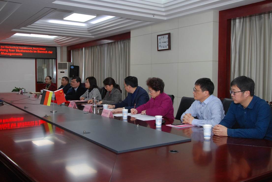 2021年2月1日,我校與德國奧斯納布呂克應(yīng)用科學(xué)大學(xué)在線簽訂關(guān)于全面開展經(jīng)濟(jì)與管理類專業(yè)人才聯(lián)合培養(yǎng)協(xié)議。吳春梅校長,陳秀副校長,教務(wù)處、國際交流合作處、經(jīng)濟(jì)與管理學(xué)院和中德應(yīng)用科學(xué)學(xué)院負(fù)責(zé)人在會議室參加線下簽約儀式,奧斯納布呂克應(yīng)用科學(xué)大學(xué)貝爾特拉姆校長,布朗·馮·萊勒斯多夫副校長,經(jīng)濟(jì)與社會科學(xué)學(xué)院拉克勒副院長,國際處和企業(yè)經(jīng)濟(jì)與管理專業(yè)負(fù)責(zé)人在線上參加簽約儀式。儀式由陳秀副校長主持。