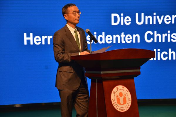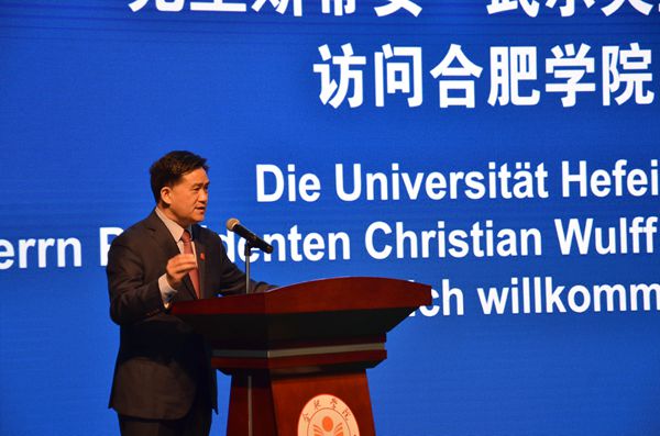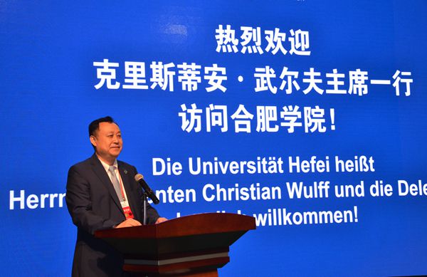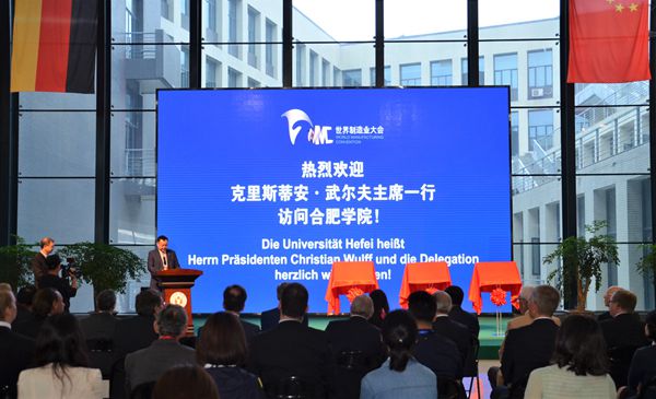 5月26日,德國前總統(tǒng)、全球中小企業(yè)聯(lián)盟主席克里斯蒂安?武爾夫來訪我校并出席中德先進(jìn)制造業(yè)(合肥)合作促進(jìn)中心、全球商會(huì)合作網(wǎng)基地、中德固體廢棄物研究協(xié)同創(chuàng)新中心揭牌儀式。