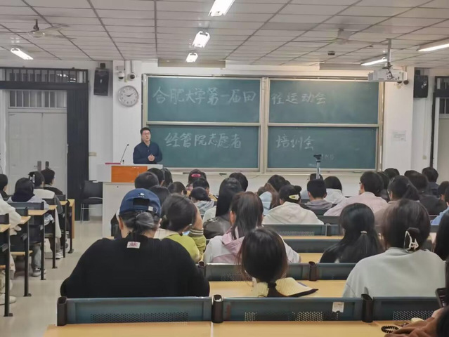 為了做好運動會的后勤保障工作,讓運動員以更加飽滿的精神面貌參加運動會,2024年10月24日晚,經濟與管理學院志愿者培訓會在一期4-107教室召開,合肥大學經濟與管理學院第一屆團委學生會全體成員到場參加。