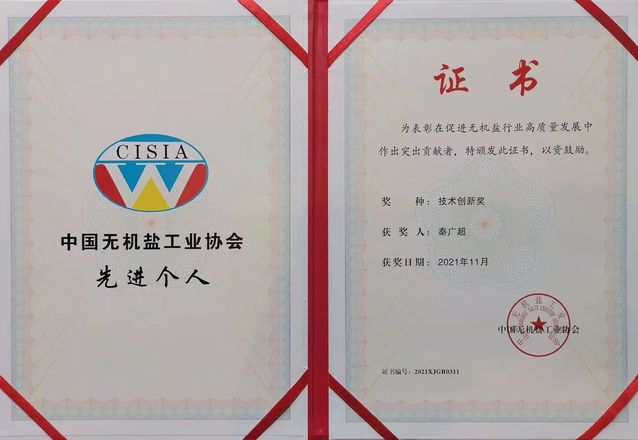 12月9日,我院秦廣超教授在中國無機鹽工業協會于江蘇無錫召開的2021無機鹽行業發展大會上,獲得技術創新先進個人稱號。