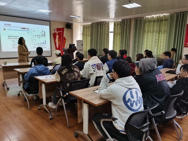 梁教授首先介紹了當(dāng)前鋰硫電池的研究背景和發(fā)展現(xiàn)狀,再從提升鋰離子電池的安全性和能量密度出發(fā),匯報了課題組在鋰硫電池正極材料、電解液、隔膜等關(guān)鍵材料方面做的主要工作和研究成果,系統(tǒng)地向大家分享了她在設(shè)計高安全高比能電池的研究思想和成功經(jīng)驗。會后,梁老師與同學(xué)們還進行了進一步交流,對同學(xué)們提出的問題做了細致解答。