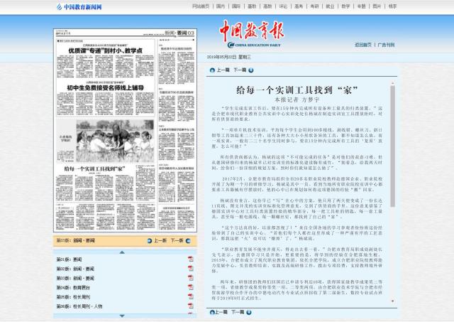 5月22日,《中國教育報(bào)》第三版“新聞﹒要聞”欄刊發(fā)了該報(bào)記者方夢宇的文章《給每個(gè)實(shí)訓(xùn)工具找到“家”》。該文以合肥市現(xiàn)代職業(yè)教育實(shí)訓(xùn)中心楊斌老師在實(shí)訓(xùn)工作中進(jìn)行標(biāo)準(zhǔn)化建設(shè)管理,培養(yǎng)嚴(yán)謹(jǐn)有序的工匠精神為例,報(bào)道了合肥市職業(yè)院校教師赴德研修的收獲,以及如何將德國經(jīng)驗(yàn)應(yīng)用于實(shí)際工作,把學(xué)到的東西在合肥落地生根的情況。文章中介紹了合肥職業(yè)院校教師能力發(fā)展中心服務(wù)地方職業(yè)教育發(fā)展,承擔(dān)了合肥市職業(yè)院校教師赴德高端研修工作,取得了豐碩的成果。