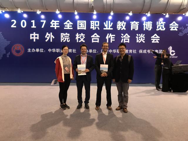 2017年全國(guó)職業(yè)教育博覽會(huì)暨中華職業(yè)教育社百年歷史圖片展于5月5日至7日在中國(guó)國(guó)際展覽中心舉辦,共有100余所辦學(xué)質(zhì)量?jī)?yōu)良的職業(yè)院校,數(shù)十家企業(yè)以及國(guó)外教育機(jī)構(gòu)參展。我中心陳國(guó)剛副主任、王美美老師等3人應(yīng)邀參加了博覽會(huì)有關(guān)活動(dòng),了解了職業(yè)教育的發(fā)展及現(xiàn)狀,探討交流了人才培養(yǎng)有關(guān)問(wèn)題。本次博覽會(huì)由中華職業(yè)教育社、中國(guó)教育電視臺(tái)和中展集團(tuán)聯(lián)合主辦,是2017年職業(yè)教育宣傳周活動(dòng)的一部分,代表了當(dāng)前我國(guó)職業(yè)教育的發(fā)展水平和質(zhì)量。  中華職業(yè)教育社是我國(guó)成立最早的職業(yè)教育社團(tuán),中共中央總書(shū)記、國(guó)家主席、中央軍委主席習(xí)近平發(fā)來(lái)賀信,代表中共中央,對(duì)該社成立100周年致以熱烈祝賀。該社成立100周年慶祝大會(huì)于5月5日在京舉行,中共中央政治局常委、全國(guó)政協(xié)主席俞正聲等領(lǐng)導(dǎo)出席并講話(huà)。5月6日,全國(guó)職業(yè)教育博覽會(huì)暨中華職業(yè)教育社百年歷史圖片展在中國(guó)國(guó)際展覽中心8號(hào)館正式開(kāi)幕。全國(guó)人大常委會(huì)副委員長(zhǎng)、中華職業(yè)教育社理事長(zhǎng)陳昌智等領(lǐng)導(dǎo)同志出席開(kāi)幕式并講話(huà)。領(lǐng)導(dǎo)及嘉賓觀(guān)看了職業(yè)院校師生才藝和技能展示,隨后觀(guān)摩了展會(huì),觀(guān)看了圖片展。  我中心陳國(guó)剛副主任、王美美老師等人參觀(guān)了中華職業(yè)教育社百年歷史圖片展的500多張珍貴的歷史圖片,了解了中華職業(yè)教育社一百年來(lái)所走過(guò)的光輝歷程。隨后,陳主任一行觀(guān)摩了20多個(gè)豐富多彩的教學(xué)項(xiàng)目,140多所院校和企業(yè)的特色展示,并與有關(guān)學(xué)校就人才培養(yǎng)、課程設(shè)置、實(shí)習(xí)就業(yè)等問(wèn)題進(jìn)行了交流探討。展會(huì)期間,陳主任一行來(lái)到校企合作洽談區(qū),與大唐電信、華普億方等企業(yè)代表溝通交流。我中心參會(huì)人員重點(diǎn)關(guān)注了中外合作洽談會(huì),在中外合作洽談區(qū)了解了職業(yè)院校與外方學(xué)校、機(jī)構(gòu)合作育人的情況。陳主任、王老師用英語(yǔ)、德語(yǔ)與都柏林理工大學(xué)海外項(xiàng)目總監(jiān)等外方機(jī)構(gòu)人員就中外職業(yè)教育、境外研修、課程設(shè)置、教學(xué)方法等進(jìn)行交流探討。 此次博覽會(huì)不僅對(duì)中華職業(yè)教育社百年歷史進(jìn)行了集中展示,而且全方位地展示了職業(yè)教育的成果和魅力,更為職業(yè)教育“產(chǎn)、學(xué)、研、銷(xiāo)”一體化搭建了展示平臺(tái)。我中心通過(guò)深入?yún)⒂^(guān)學(xué)習(xí),了解了國(guó)內(nèi)外職業(yè)教育的發(fā)展情況,認(rèn)識(shí)到職業(yè)教育在經(jīng)濟(jì)社會(huì)發(fā)展和人的全面發(fā)展方面所做出的巨大貢獻(xiàn),促進(jìn)了校企合作、中外合作等工作的開(kāi)展。 |
