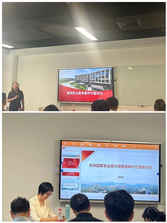 儀式結(jié)束后,杜娟老師為學(xué)員們講授“教師職業(yè)教育素養(yǎng)”專題課程。重點圍繞“四有”好老師、教育家精神、“大先生”等內(nèi)容,穿插各類教育實例,為新入職教師師德師風(fēng)建設(shè)夯實基礎(chǔ)。9月22日晚上,馬克思主義學(xué)院胡彩林老師介紹了國家安全教育方面的知識,講解了新入職教師學(xué)習(xí)總體國家安全觀,對于增強安全意識、履行教育職責(zé)、促進(jìn)專業(yè)發(fā)展、應(yīng)對風(fēng)險挑戰(zhàn)以及塑造正確價值觀具有重要意義。此外,先進(jìn)制造工程學(xué)院李尚榮老師、田一鳴老師為機械設(shè)計制造班學(xué)員講授了五個專題的課程,王慧然老師、楊昊老師、朱茂飛老師和仇多洋老師為汽車制造班學(xué)員講授了五個專題的課程。
