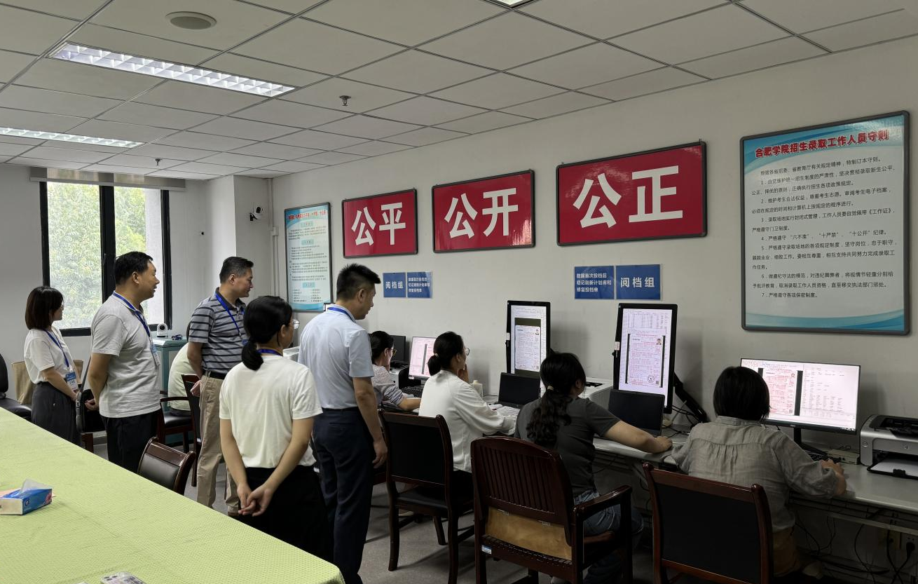 在招生錄取現(xiàn)場,考試院領(lǐng)導(dǎo)認真聽取了錄檢管理、數(shù)據(jù)處理、咨詢接待、安全保障等工作組工作情況匯報,對我校招生工作安排及開展情況給予了充分肯定,對工作人員暑期堅守工作崗位、辛勤付出表示慰問。張英明強調(diào),高招錄取事關(guān)工作廣大考生切身利益,事關(guān)教育公平和社會公正,要嚴格貫徹遵守國家教育部及省考試院相關(guān)錄檢工作的規(guī)定和要求,嚴肅錄取工作紀律,強化監(jiān)督執(zhí)紀,規(guī)范錄取工作人員工作流程,認真落實投檔錄檢等關(guān)鍵環(huán)節(jié)工作責(zé)任,及時回應(yīng)考生及家長的關(guān)切,切實做到以考生為中心,助力更多考生圓夢合肥大學(xué)。