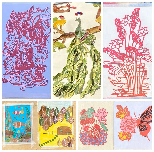 本次展覽作品由21級學(xué)前教育普本班學(xué)生完成,涉及剪紙刻紙、樹葉粘貼畫、紙漿畫等多種藝術(shù)表現(xiàn)形式,作品色彩鮮明、奇思妙想、稚趣盎然,體現(xiàn)了學(xué)生們對藝術(shù)的熱愛,凸顯了學(xué)前專業(yè)特色。展出期間,前來觀看的學(xué)生也絡(luò)繹不絕,他們在各式各樣的作品前或駐足欣賞,或細(xì)心品味,不時(shí)用手中的相機(jī)或手機(jī)拍攝,留下精彩畫面。