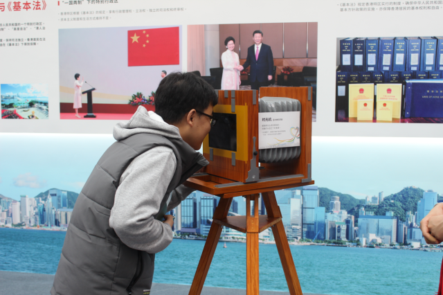 本次巡回展的題包括“‘一國兩制’與《基本法》”“通往內地、連接全球”“創新及科技發展”等,通過資料及圖片,介紹香港在金融、經貿、科技創新、粵港澳大灣區、基建、文化、藝術、體育、旅游等各方面的最新發展。并在其中注入了大量互動元素,特設、擴增實境留影角、時光機以及虛擬實境體驗區。劉政帶著學生們紛紛參與其中,在深入了解香港文化的同時,體驗了各種豐富的活動項目,并通過這些活動領略到了香港中西薈萃的城市魅力,并感受到了香港的發展。最后,劉政與學生們一起在合照留影,至此本次參觀活動圓滿結束。